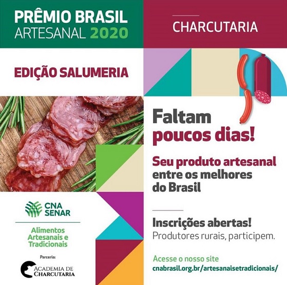 As inscrições para o “Prêmio Brasil Artesanal 2020 – Edição Charcutaria” poderão ser feitas até sexta (6). Os produtores de salame artesanal que estiverem interessados em participar terão que se cadastrar no Programa de Alimentos Artesanais e Tradicionais. O objetivo da iniciativa do Sistema CNA/Senar, em parceria com a Academia da Charcutaria, é reconhecer os produtores […]