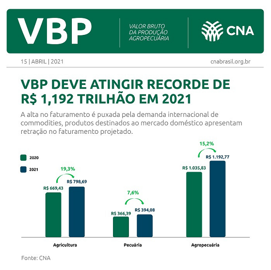 Valor Bruto da Produção deve atingir R$ 1,192 trilhão em 2021