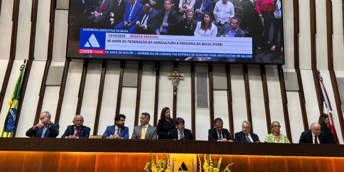 Os 60 anos da Federação da Agricultura e Pecuária da Bahia (Faeb) foram celebrados em uma sessão especial na Assembleia Legislativa da Bahia (Alba), nesta segunda-feira (13), em Salvador. A homenagem, proposta pelo deputado estadual Paulo Câmara, reuniu autoridades políticas e lideranças do setor produtivo baiano e nacional no plenário da Casa.